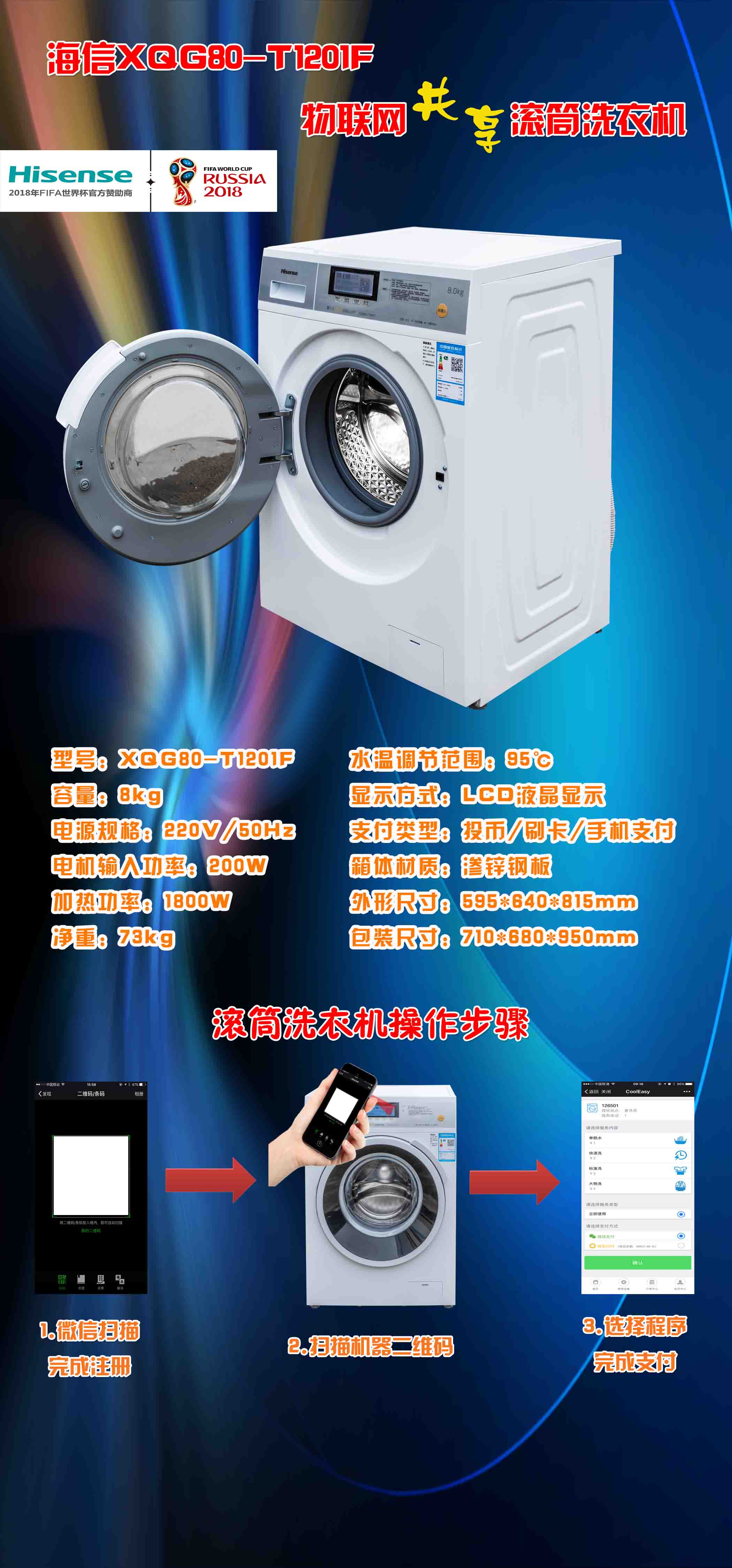 Hisense/海信 8公斤XQG80-T1201F共享商用滾筒洗衣機(jī)